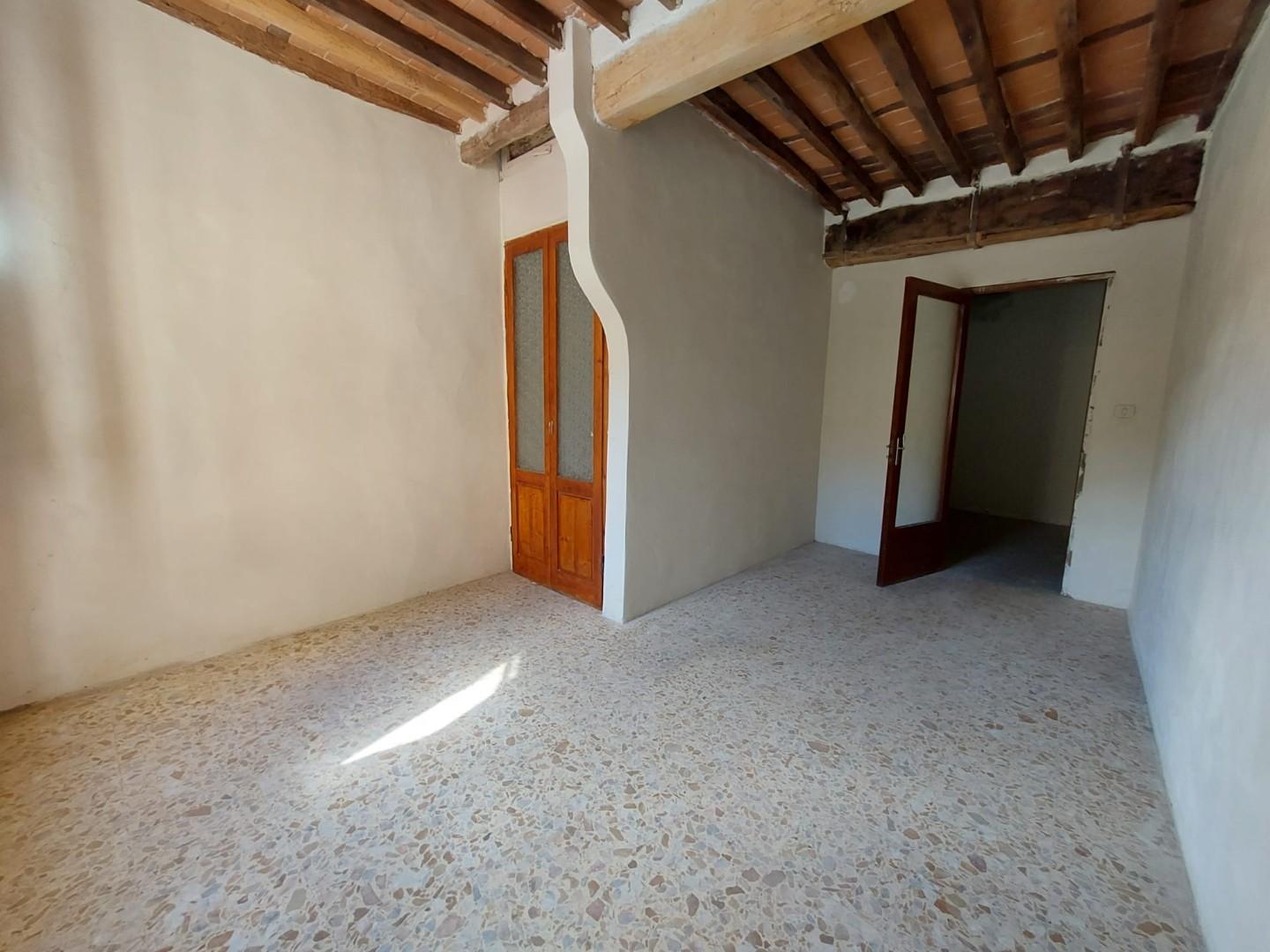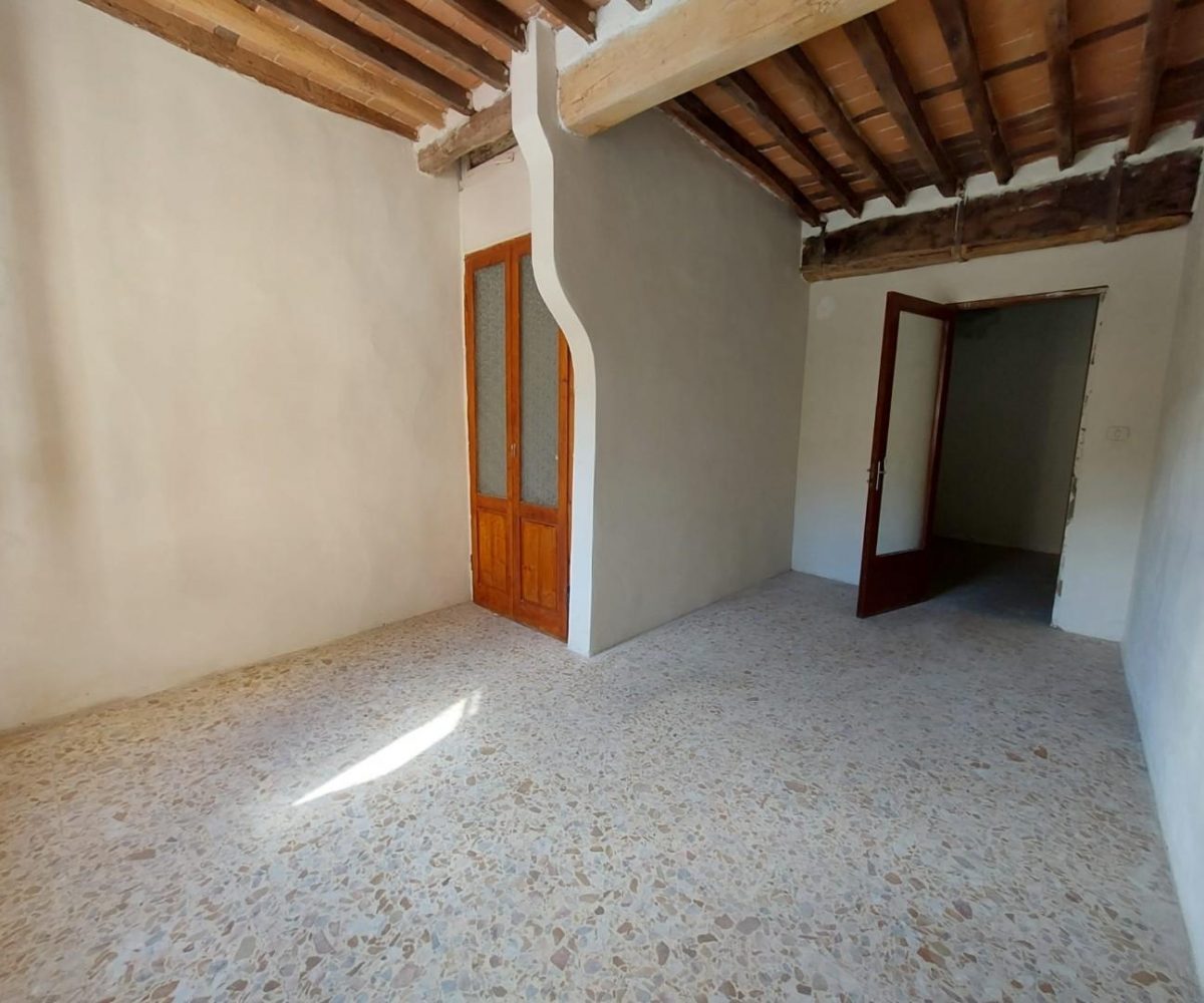 Buti — NOSTRA ESCLUSIVA — In prossimità della piazza principale vendesi appartamento posto al primo piano di una palazzina di sole 3 unità abitative (NO SPESE CONDOMINIALI). L'immobile si compone in: ingresso, ampio soggiorno con ripostiglio, cucina abitabile, 2 camere matrimoniali, bagno e ulteriore ripostiglio sottoscala. Completa la proprietà una terrazza abitabile di proprietà esclusiva. Posizione strategica vicina a tutti i servizi. Possibilità di acquistare a parte un fondo commerciale di circa 70 mq posto al piano terra con resede e cantina Classe energetica: G – Rif. 1676-L