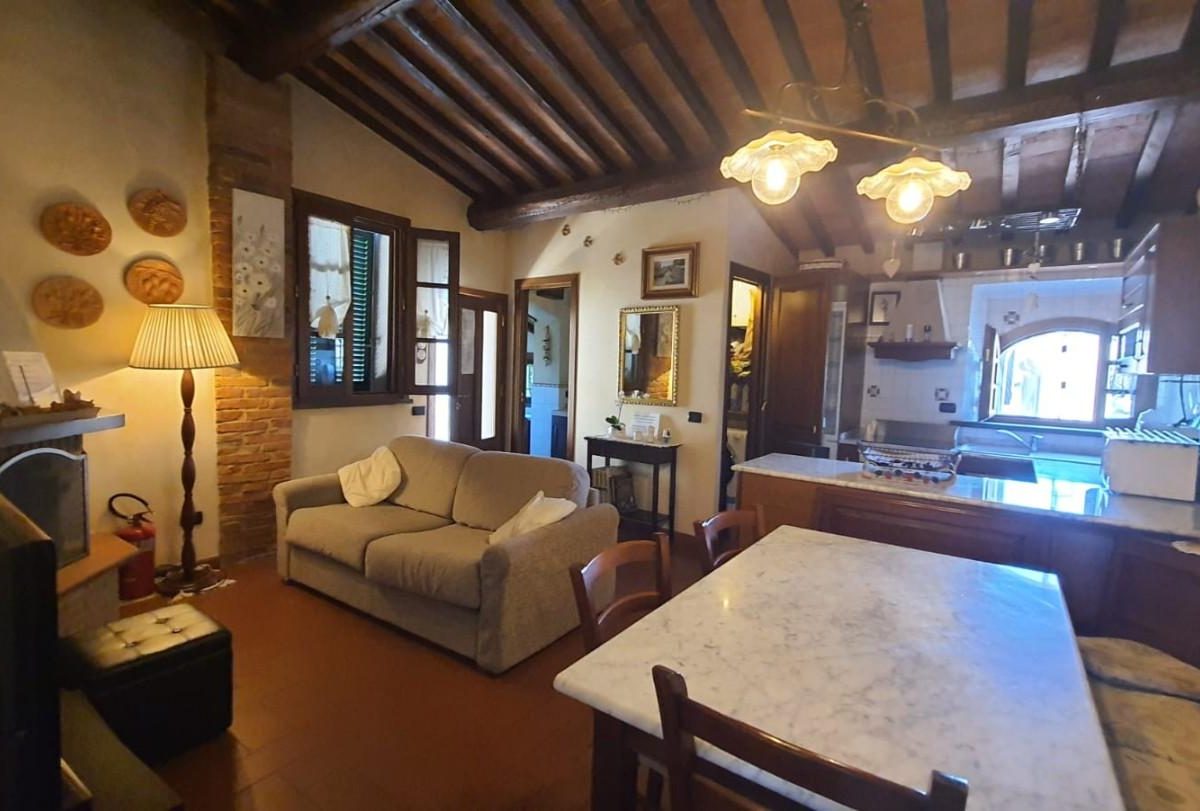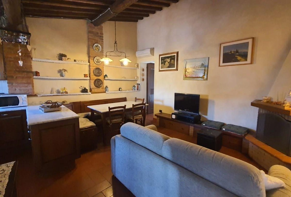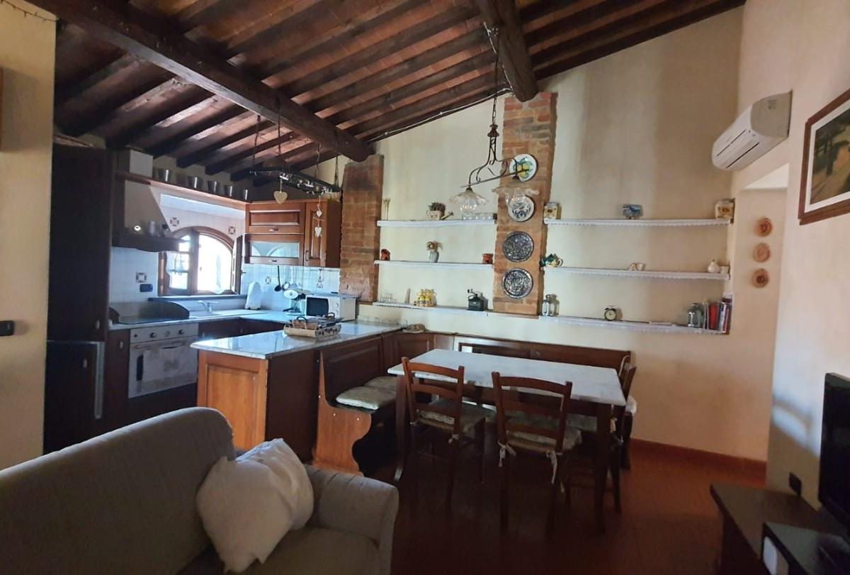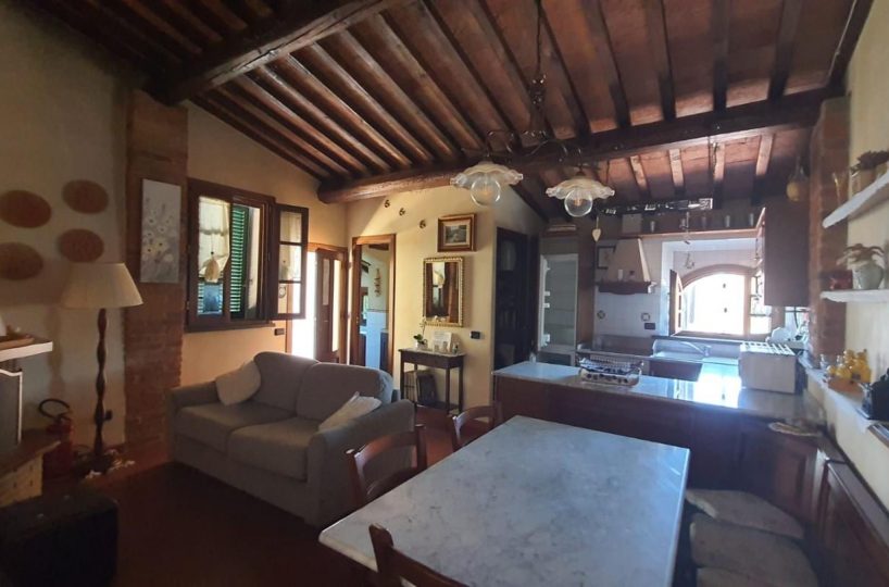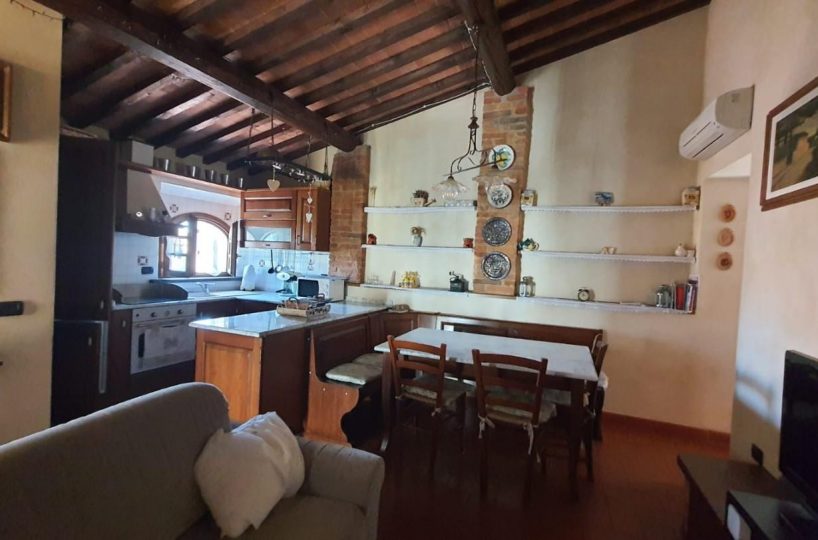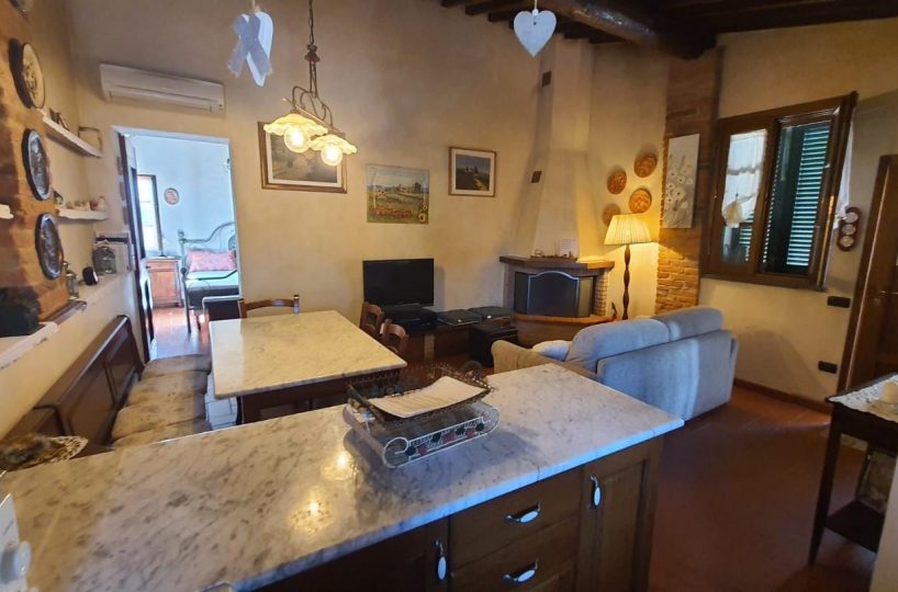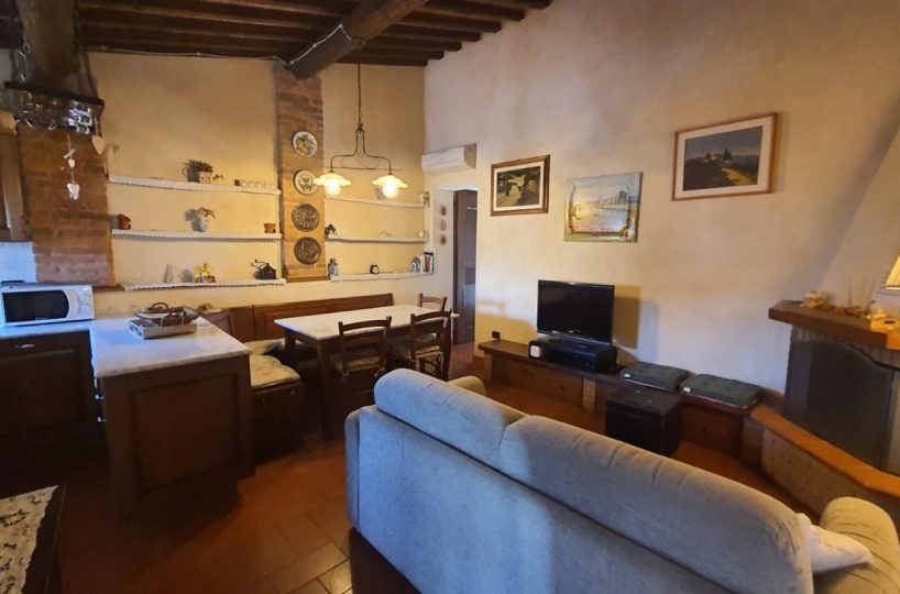 –PALAIA–CENTRO STORICO–Vendesi appartamento COMPLETAMENTE E FINEMENTE RISTRUTTURATO in stile rustico Toscano posto al piano secondo, cosi composto: ingresso in AMPIO soggiorno con CAMINO e condizionatore , ANGOLO COTTURA , disimpegno notte, una camera matrimoniale con condizionatore , cameretta/studio, bagno con finestra. L'appartamento ha rifiniture di pregio, pavimento in cotto, travi a vista, infissi nuovi, condizionatore e pompa di calore