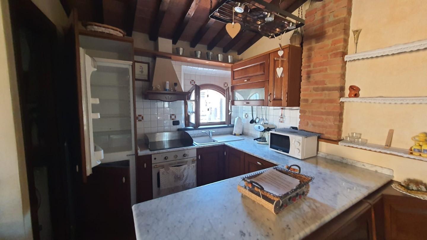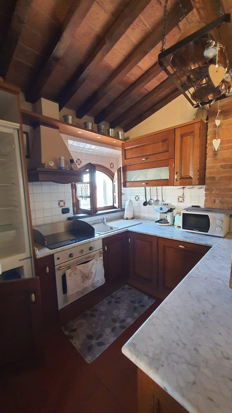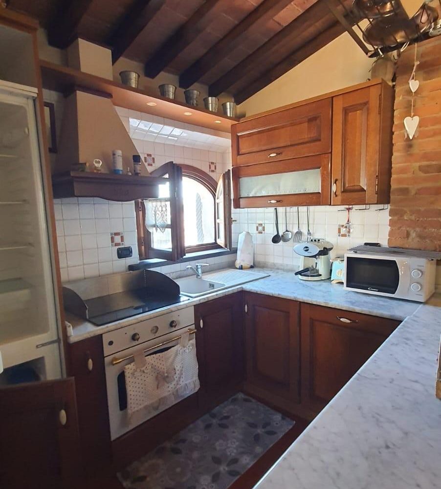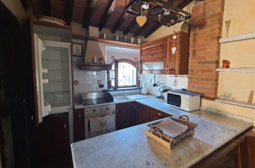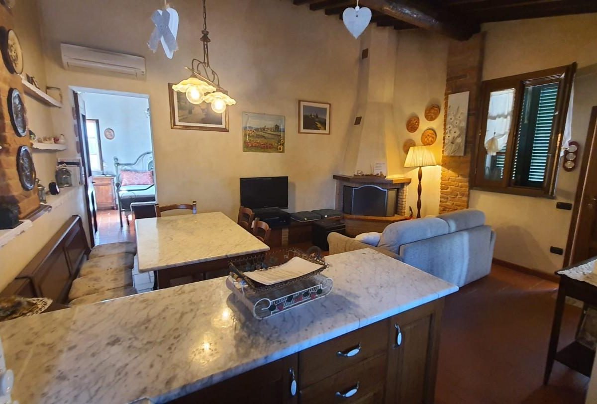 –PALAIA–CENTRO STORICO–Vendesi appartamento COMPLETAMENTE E FINEMENTE RISTRUTTURATO in stile rustico Toscano posto al piano secondo, cosi composto: ingresso in AMPIO soggiorno con CAMINO e condizionatore , ANGOLO COTTURA , disimpegno notte, una camera matrimoniale con condizionatore , cameretta/studio, bagno con finestra. L'appartamento ha rifiniture di pregio, pavimento in cotto, travi a vista, infissi nuovi, condizionatore e pompa di calore