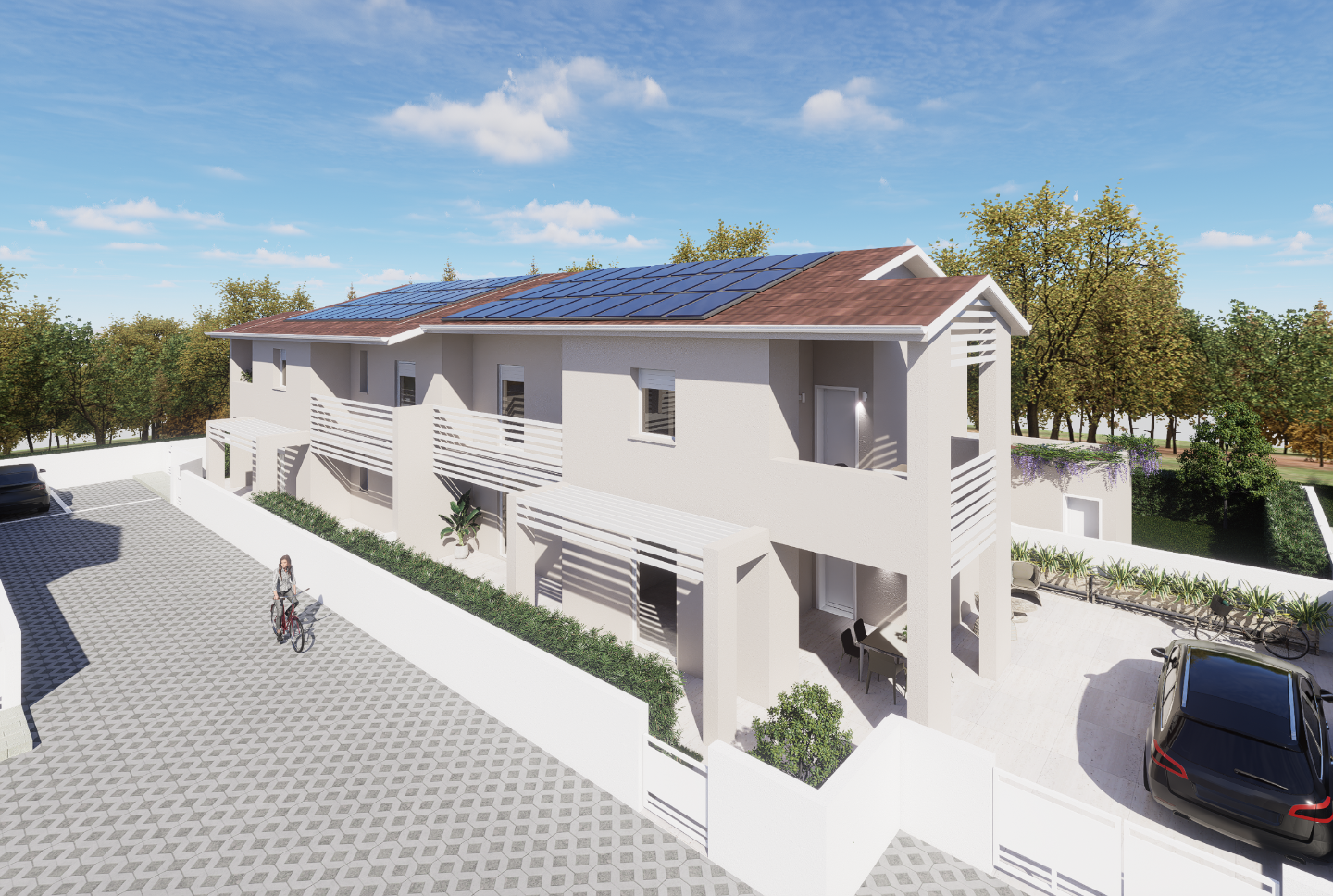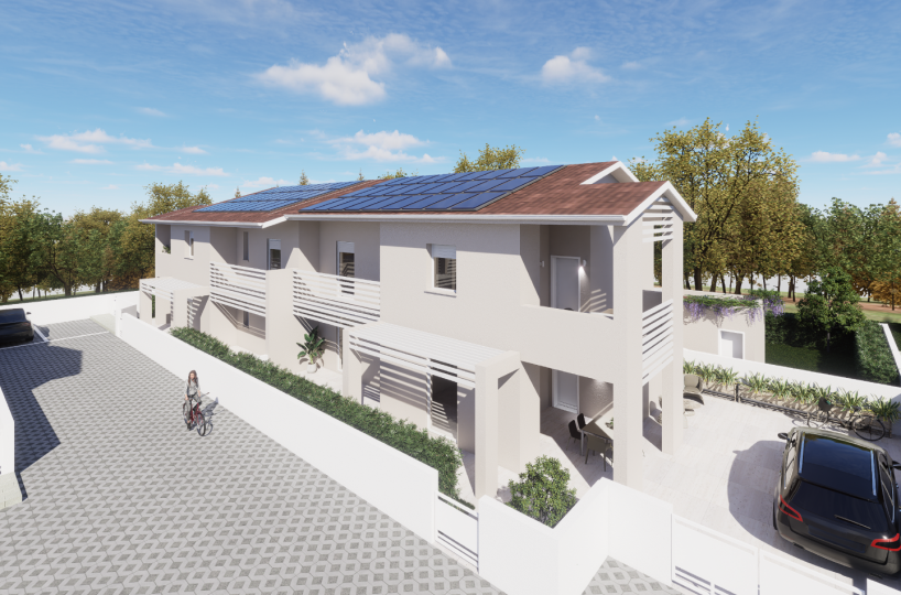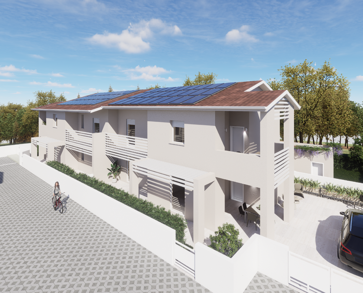 Giardino – Ponsacco NOSTRA ESCLUSIVA CANTIERE EX VITAMINOL Prossima realizzazione di quadrifamiliare composta da due appartamenti indipendenti a piano terra con possibilità di taverna collegata e due appartamenti indipendenti al primo piano con giardino e loggiato, il tutto il classe A4!