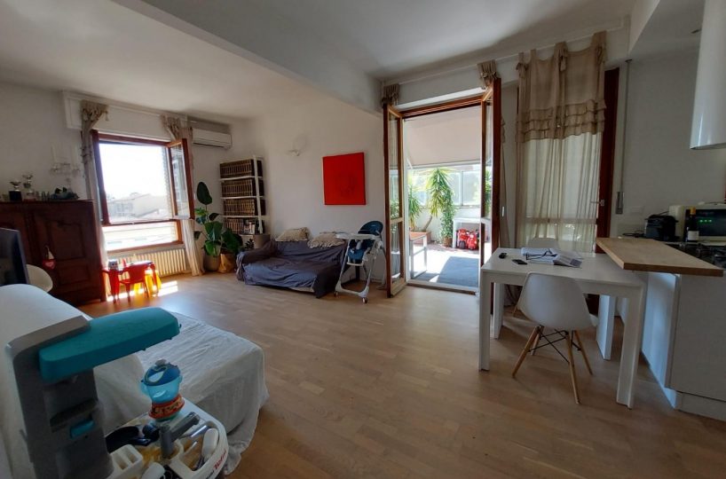 Pontedera – Centro – Vendesi attico recentemente ristrutturato con finiture di pregio posto al terzo ed ultimo piano con ascensore. L'immobile si compone in: ingresso, ampèia zona giorno in open space con angolo cottura e accesso alla fantastica terrazza abitabile di circa 30 mq ideale per prazi o cene all' aperto nel periodo estivo. Attraverso un disimpegno si raggiunge la zona notte composta da: ampia camera matrimoniale, cameretta con terrazzo, bagno finestrato con doccia e ampio ripostiglio. Immobile unico nel suo genere. La casa si presenta in ottime condizioni e può essere abitabile sin da subito. Zona strategica vicino al centro. Massima luminosità. Classe energetica: D – Rif. 1262