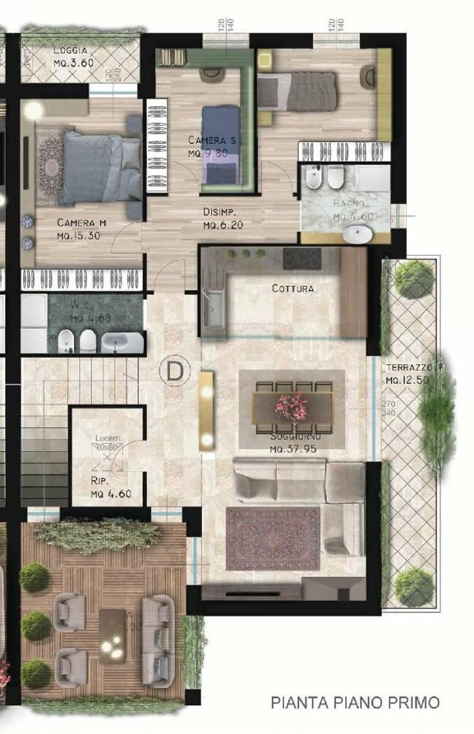 La Borra – Pontedera – Vendesi appartamento di nuova costruzione posto al piano primo con ingresso indipendente di un fabbricato di sole quattro unità, libero su tre lati. L'immobile si compone a piano terra da ingresso e vano scala oltre a garage, mentre a piano primo troviamo soggiorno-cucina in unico ambiente con accesso diretto su ampia loggia coperta ideale per cene all'aperto, e su un'ulteriore terrazzo, ripostiglio, bagno, disimpegno notte, tre camere ed ulteriore bagno. massima efficenza energetica.