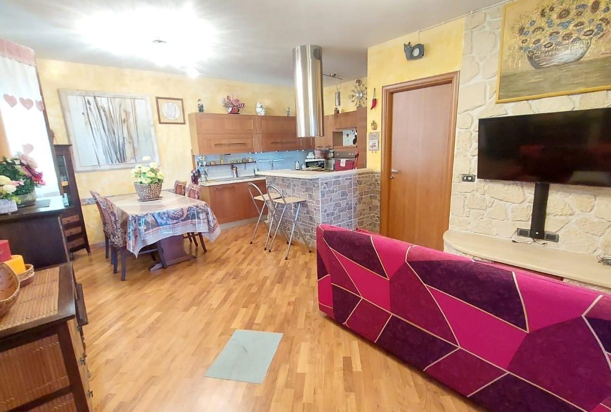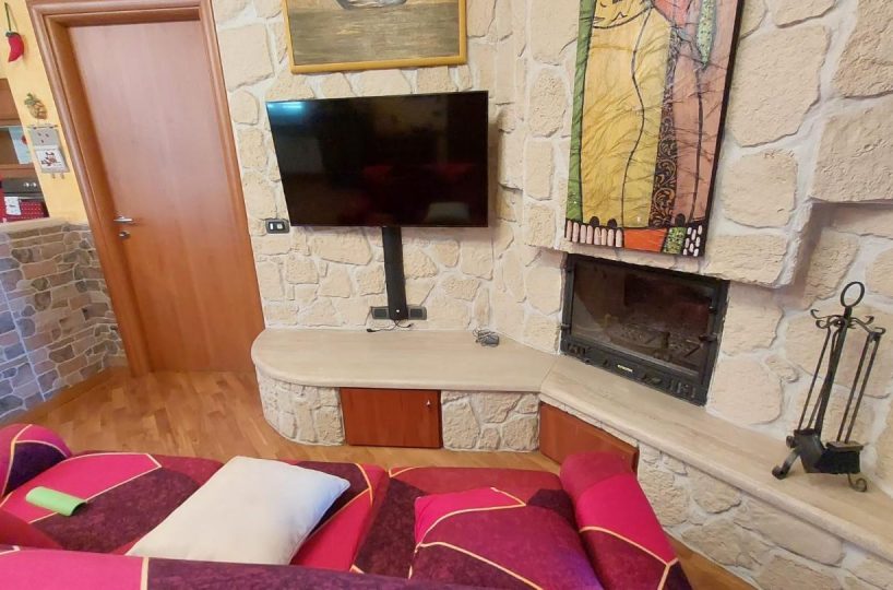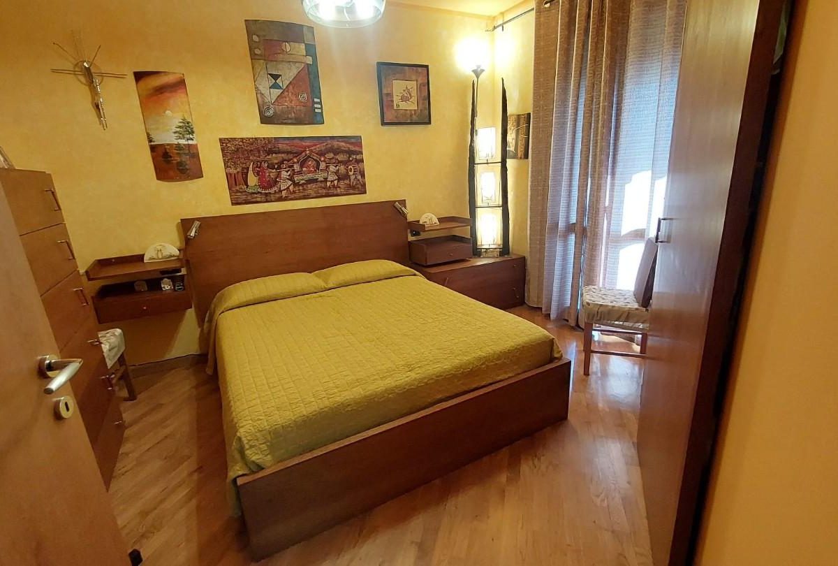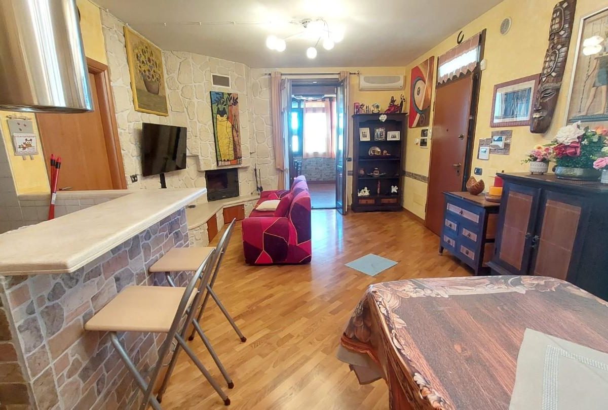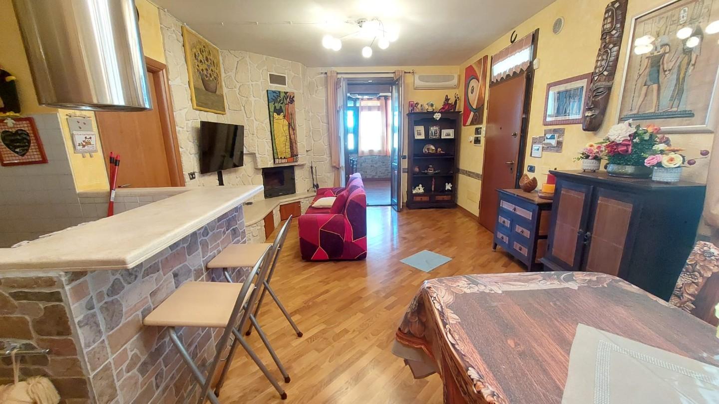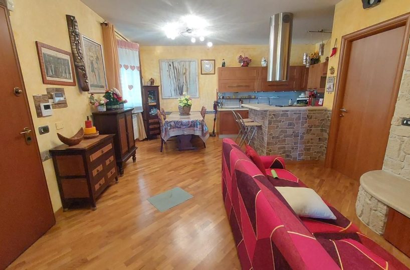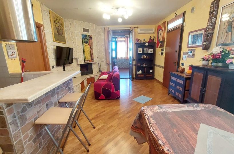 In zona periferica ma vicina alle principali vie di comunicazione, vendesi appartamento posto al piano primo e ultimo di circa 85mq composto da: ingresso da TERRAZZO COPERTO in LUMINOSO soggiorno con CAMINO , ANGOLO COTTURA, LOGGIA DI 34 mq utilizzata come sala JOLLY in quanto climatizzata, disimpegno notte con due camere, una matrimoniale con CABINA ARMADIO su MISURA e uno camera singola, entrambi con accesso al TERRAZZO di 10 mq. Completa la proprietà un GIARDINO di circa 100 mq su due lati dell'abitazione fornito di illuminazione, accesso da CANCELLO CARRABILE AUTOMATICO e pedonale, DUE POSTI AUTO uno interno e uno esterno al giardino. L'immobile è inoltre fornito di doppi vetri, zanzariere, climatizzatori, videocitofono e allarme NESSUNA SPESA CONDOMINIALE. – Rif. 2397-AO