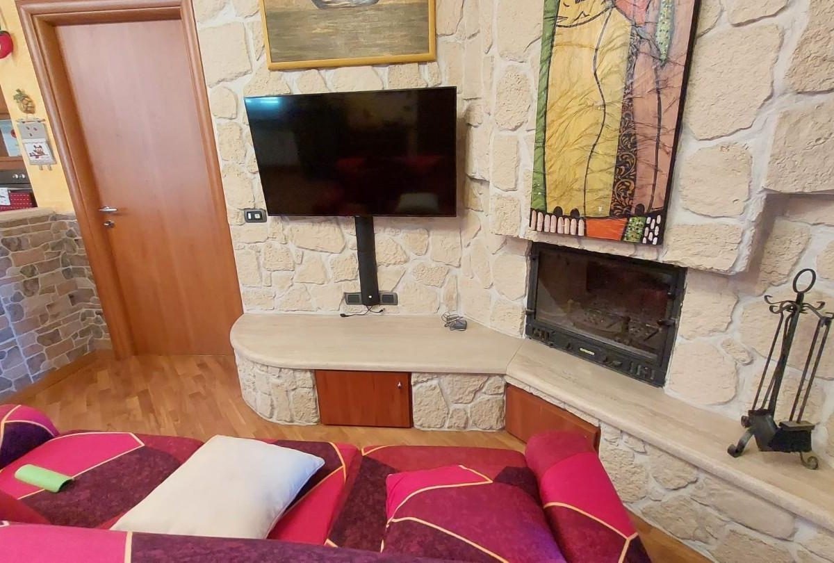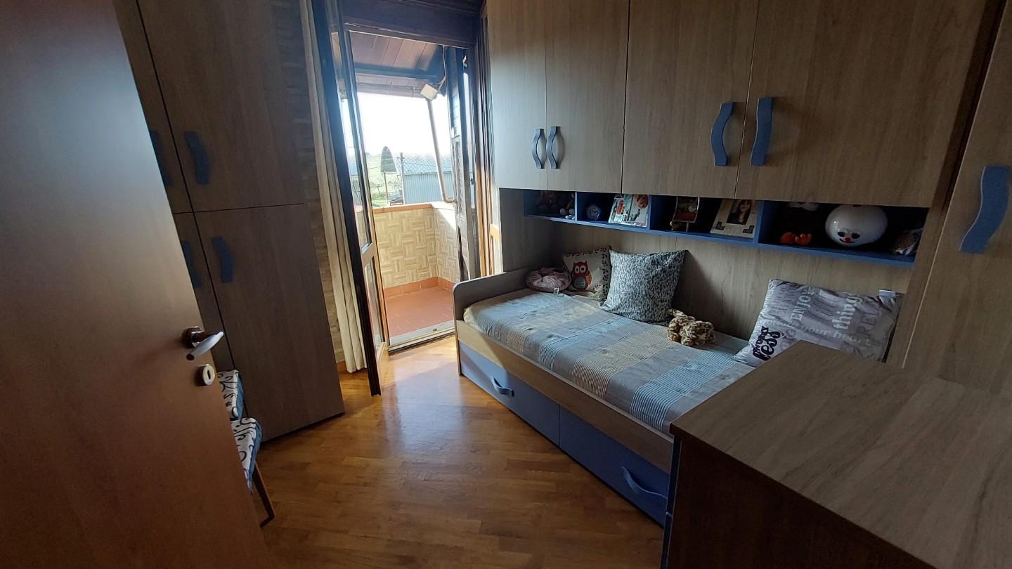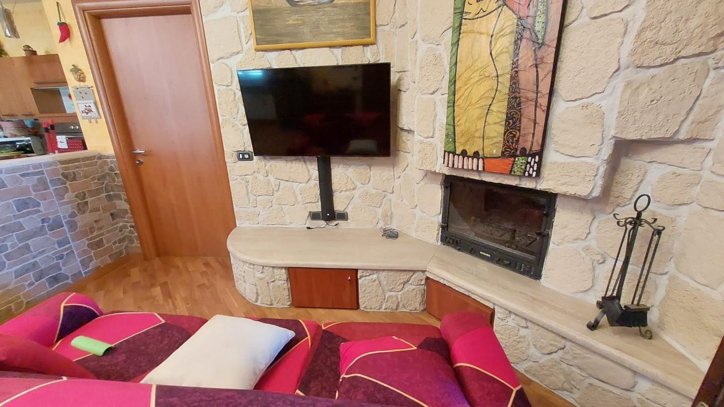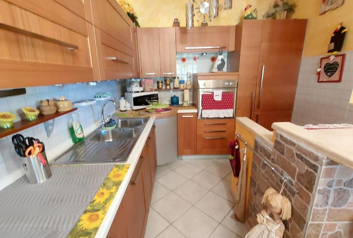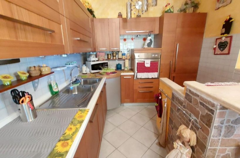 In zona periferica ma vicina alle principali vie di comunicazione, vendesi appartamento posto al piano primo e ultimo di circa 85mq composto da: ingresso da TERRAZZO COPERTO in LUMINOSO soggiorno con CAMINO , ANGOLO COTTURA, LOGGIA DI 34 mq utilizzata come sala JOLLY in quanto climatizzata, disimpegno notte con due camere, una matrimoniale con CABINA ARMADIO su MISURA e uno camera singola, entrambi con accesso al TERRAZZO di 10 mq. Completa la proprietà un GIARDINO di circa 100 mq su due lati dell'abitazione fornito di illuminazione, accesso da CANCELLO CARRABILE AUTOMATICO e pedonale, DUE POSTI AUTO uno interno e uno esterno al giardino. L'immobile è inoltre fornito di doppi vetri, zanzariere, climatizzatori, videocitofono e allarme NESSUNA SPESA CONDOMINIALE. – Rif. 2397-AO