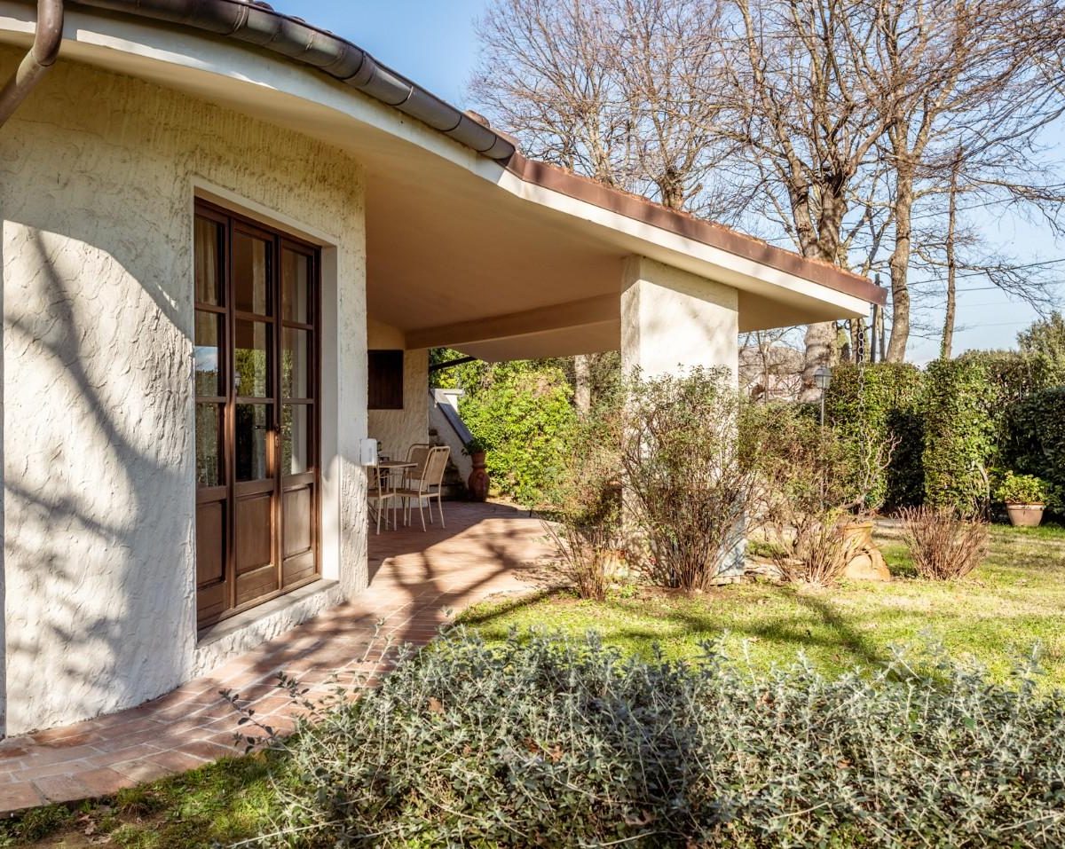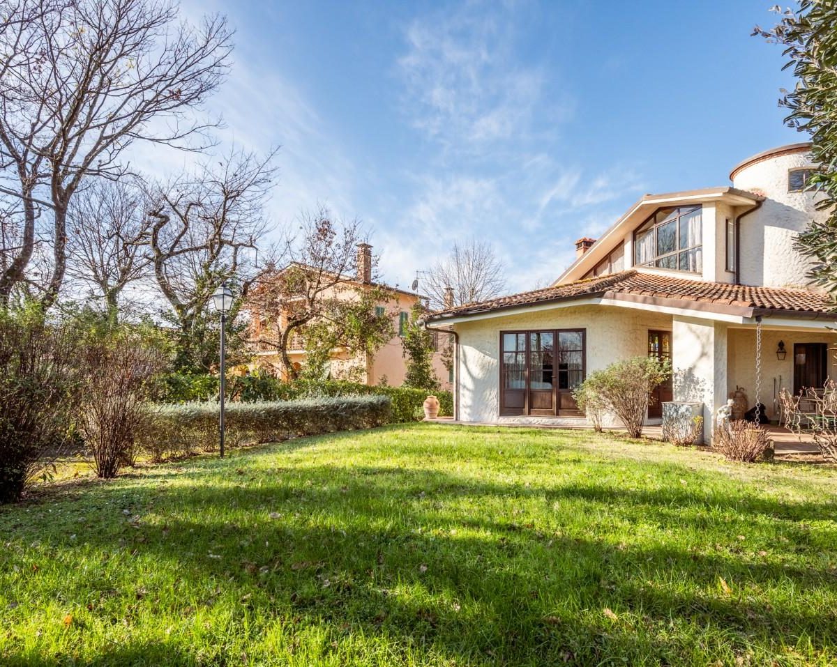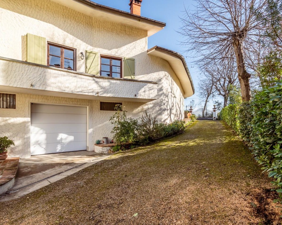 SANTA COLOMBA — NOSTRA ESCLUSIVA — In posizione riservata e residenziale, VILLA SINGOLA di design, IN OTTIME CONDIZIONI, con 650 circa di giardino circostante. Alla villa, architettonicamente disposta su più piani sfalsati, si accede, da un ampio porticato in un grande e luminoso DOPPIO soggiorno, il vero cuore centrale dell'abitazione, dal quale si possono raggiungere tutti gli altri spazi dell' abitazione, come la cucina ABITABILE, con spazio per il pranzo e da cui si può anche uscire in giardino per pranzare all' aperto. Sempre dal soggiorno si sale nella zona notte composta da TRE camere matrimoniali, di cui una con bagno privato ed una con balcone ed il bagno padronale. Da scala a chiocciola si sfocia in mansarda o scendere in taverna. La mansarda, con bagno è ampia e luminosa, troviamo anche uno spazio che può essere usato come ulteriore salotto o zona giochi o relax, ed uno spazio adibito a studio, il tutto servito da un servizio igienico dedicato. La taverna con predisposizione con canna fumaria per un camino o stufa, un angolo cottura e un locale ad uso lavanderia. La proprietà è inoltre dotata di un ampio garage/ magazzino ed un locale tecnico per la caldaia e dispositivi vari. La villa si completa con all' interno un SECONDO APPARTAMENTO INDIPENDENTE, composto da soggiorno, cucina/pranzo, camera matrimoniale e bagno. Il Giardino, ottimamente tenuto, è su tutti i lati della villa, per circa 650 mq. ed è idoneo per ospitare anche una piscina. Classe energetica: F – Rif. 1467