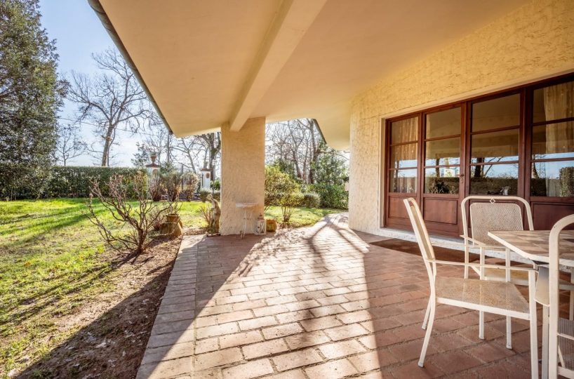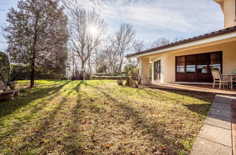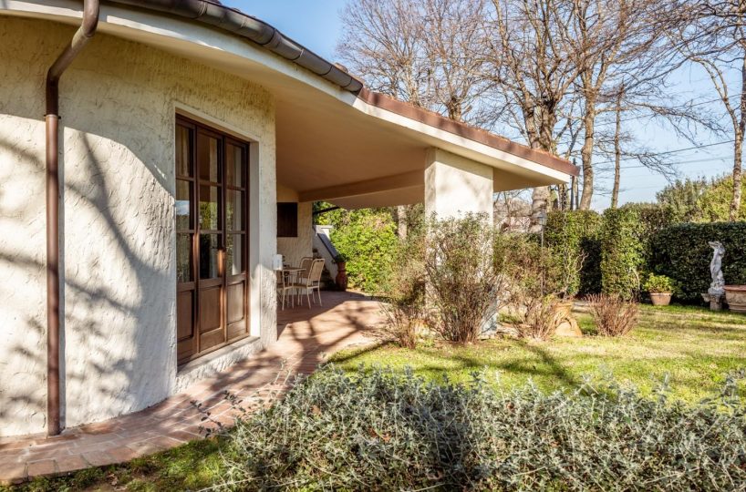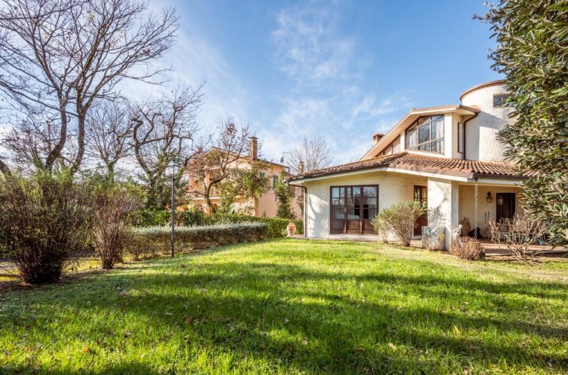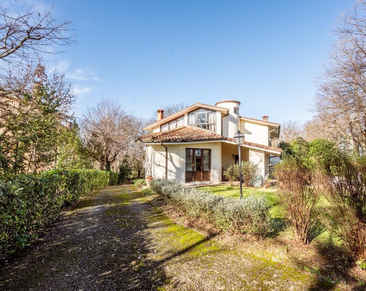SANTA COLOMBA — NOSTRA ESCLUSIVA — In posizione riservata e residenziale, VILLA SINGOLA di design, IN OTTIME CONDIZIONI, con 650 circa di giardino circostante. Alla villa, architettonicamente disposta su più piani sfalsati, si accede, da un ampio porticato in un grande e luminoso DOPPIO soggiorno, il vero cuore centrale dell'abitazione, dal quale si possono raggiungere tutti gli altri spazi dell' abitazione, come la cucina ABITABILE, con spazio per il pranzo e da cui si può anche uscire in giardino per pranzare all' aperto. Sempre dal soggiorno si sale nella zona notte composta da TRE camere matrimoniali, di cui una con bagno privato ed una con balcone ed il bagno padronale. Da scala a chiocciola si sfocia in mansarda o scendere in taverna. La mansarda, con bagno è ampia e luminosa, troviamo anche uno spazio che può essere usato come ulteriore salotto o zona giochi o relax, ed uno spazio adibito a studio, il tutto servito da un servizio igienico dedicato. La taverna con predisposizione con canna fumaria per un camino o stufa, un angolo cottura e un locale ad uso lavanderia. La proprietà è inoltre dotata di un ampio garage/ magazzino ed un locale tecnico per la caldaia e dispositivi vari. La villa si completa con all' interno un SECONDO APPARTAMENTO INDIPENDENTE, composto da soggiorno, cucina/pranzo, camera matrimoniale e bagno. Il Giardino, ottimamente tenuto, è su tutti i lati della villa, per circa 650 mq. ed è idoneo per ospitare anche una piscina. Classe energetica: F – Rif. 1467