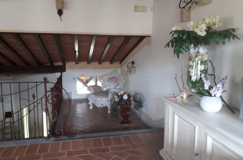 La Croce – Buti – Fabbricato di civile abitazione disposto su tre piani. Si accede all’unità immobiliare in oggetto da giardino circostante il fabbricato su tutti i lati. All’abitazione si accede da scala esterna ed è così composta: al piano terra ingresso, soggiorno, pranzo, cucina, disimpegno notte, quattro camere, antibagno, bagno, oltre al piccolo terrazzo lato est e porticato sui lati est, sud e ovest. Si accede al piano seminterrato da scale interne, si compone in: disimpegno , ampio locale di sgombro, centrale termica, lavanderia, due ripostigli, antibagno, bagno, disimpegno, locale garage e ampio porticato lato ovest, inoltre vi si accede tramite passo carrabile. Si accede al piano sottotetto da scala interna in pietra, ed è composta da ampio vano adibito a studio, oltre ad un piccolo locale mezzanino. L’immobile dispone di una struttura portante in cemento armato, il tetto è stato realizzato con travi e travicelli. Il fabbricato presenta rifiniture di pregio con infissi esterne e persiane in legno massello, infissi interni di legno massello, pavimentazione interna in piastrelle di cotto, le gronde esterne e i porticati sono con travi di legno castagno e mezzane di cotto faccia vista, oltre a ringhiere in ferro battuto pieno, pavimentazione in cotto da esterni, davanzali e scalini in pietra sagomata di tipo Cardoso. L’immobile è dotato dei seguenti impianti: impianto di aspirazione centralizzato. impianto idraulico e riscaldamento a pavimento radiante, parzializzato per le singole zone ( giorno, notte, seminterrato), impianto elettrico di ultima generazione con salva vita, messa a terra e video citofono e inoltre impianto di allarme. All’interno del resede sono presenti due depositi interrati da 20.000 litri, per l’acqua piovana collegati direttamente ai pluviali e alle gronde del fabbricato, con impianto a mezzo di pompa ad immersione di pompaggio utilizzata per l’irrigazione del giardino circostante oltre a pozzo di circa ml. 60 di profondità, anch’esso dotato di pompa a immersione. L’immobile ha i seguenti valori unitari di superficie utile: Abitazione mq 432,00Porticati mq 97,00Garage mq 43,00Resede esclusivo pavimento mq 300,00Resede esclusivo a giardino mq 470,00 Classe energetica: D – Rif. 966-AL