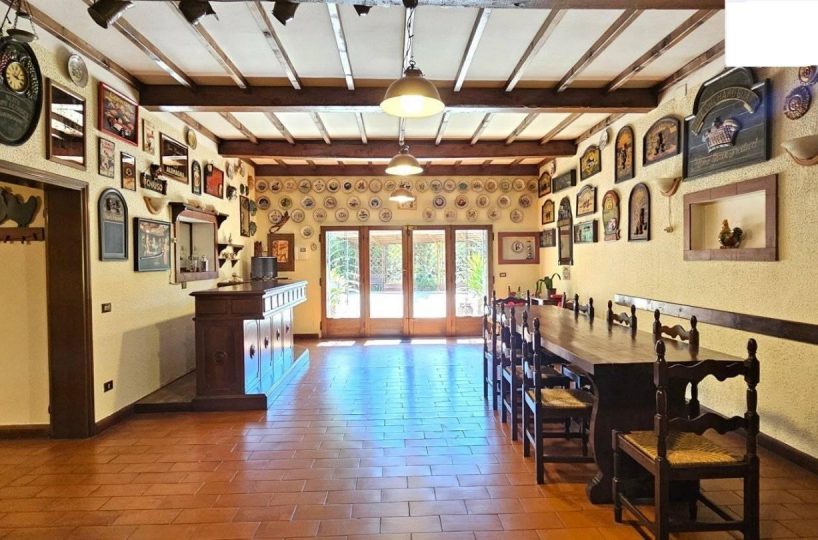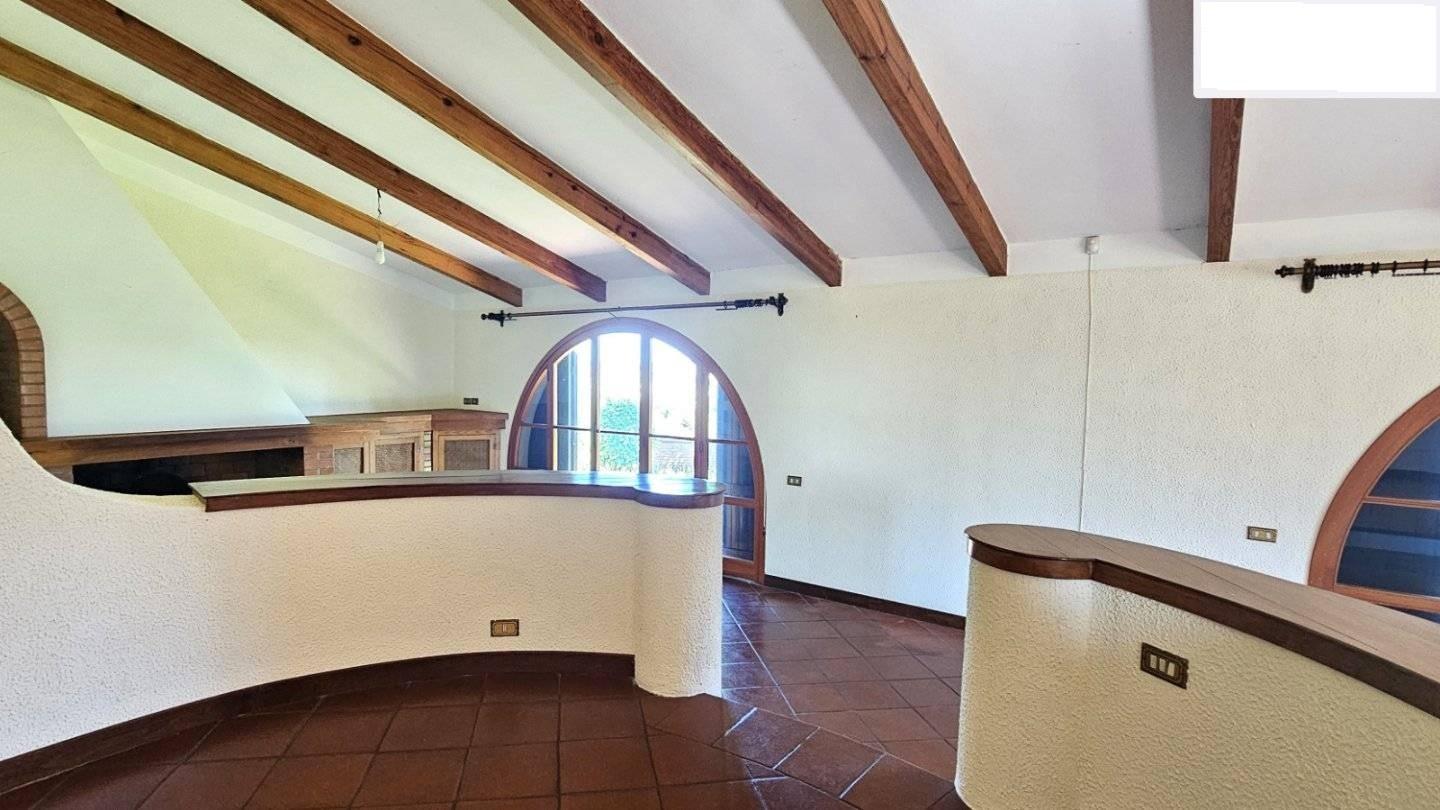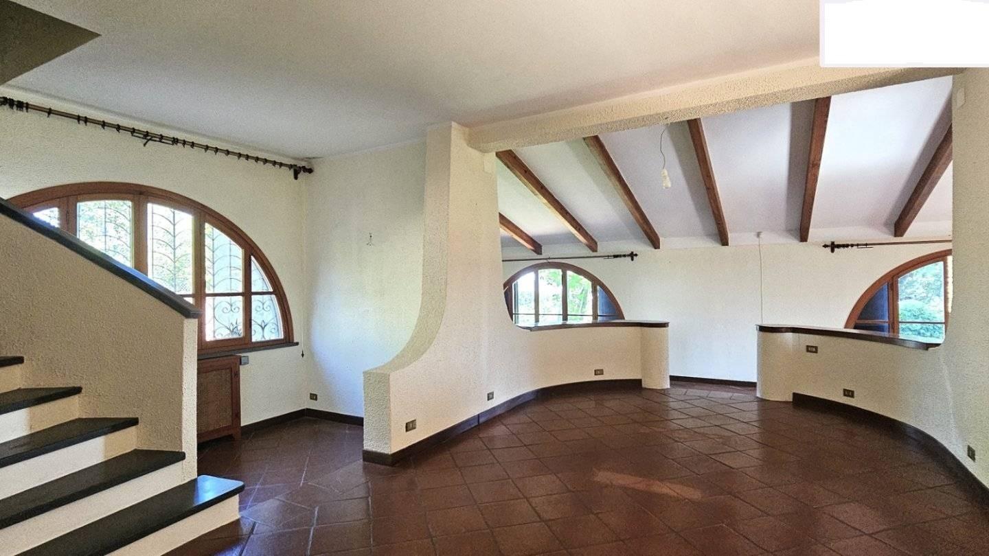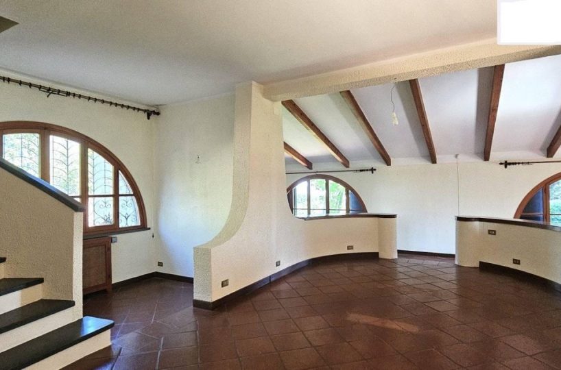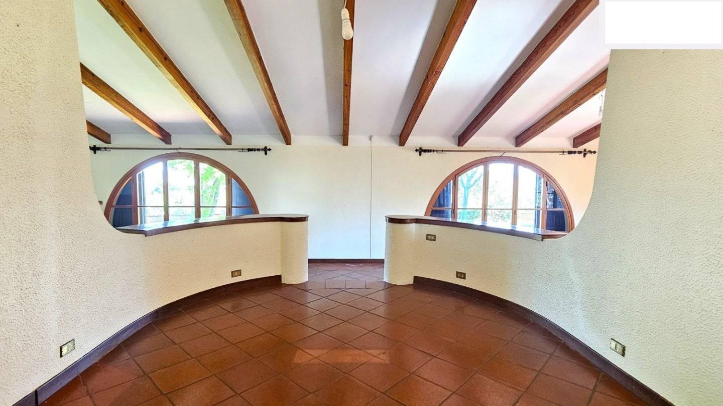La residenza, libera su quattro lati e circondata da un parco di circa mq.2500 e da un terreno in parte boschivo di circa 2 ettari, è disposta su piani sfalsati rendendo l'immobile di un fascino unico.
