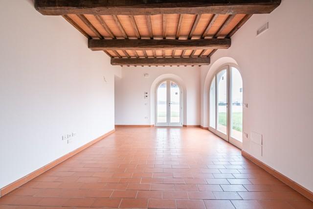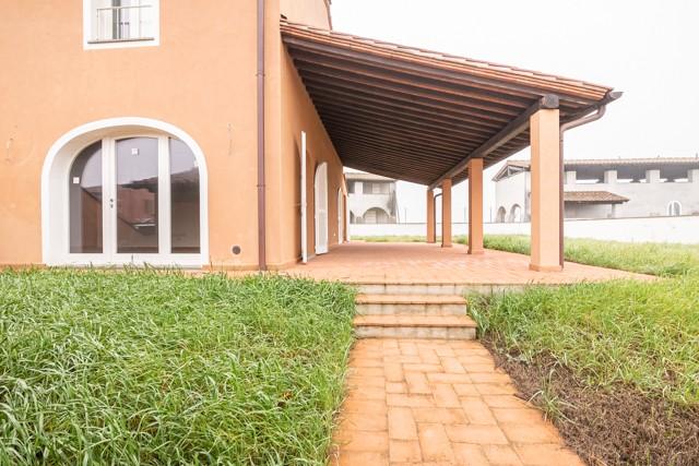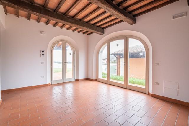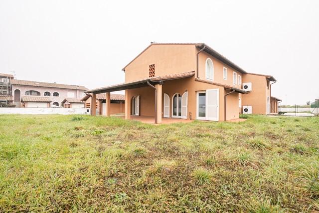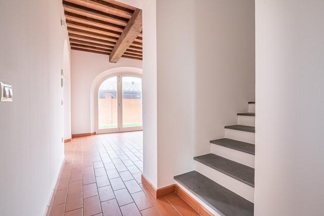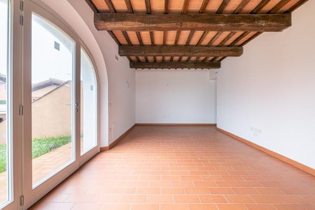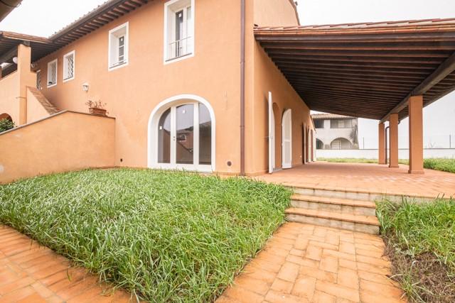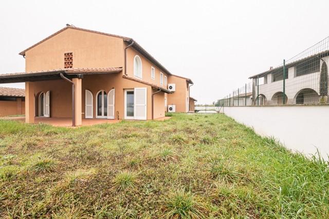 MONTECCHIO — NOSTRA ESCLUSIVA — Villetta a schiera ANGOLARE di 160 mq, CON AMPIO GIARDINO DI MQ 350 SU TRE LATI, finiture in STILE RUSTICO, immersa nel verde della campagna ma a 5 chilometro dall' ingresso della SUPERSTRADA FI-PI-LI. L' immobile è composto a piano terra da: cucina ABITABILE CON AMPIA LOGGIA, soggiorno AMPIO, studio e bagno , al PRIMO PIANO troviamo 3 camere di cui una matrimoniale , una DOPPIA ed una singola, e bagno. Completa la proprietà UN AMPIO GARAGE. — Classe energetica: A4 – Rif. 1103