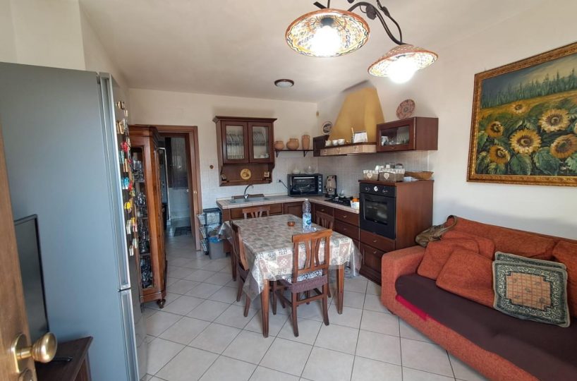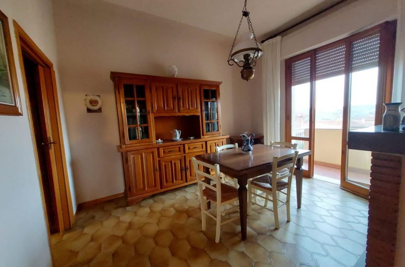 Casciana Terme – vendesi appartamento di circa 130 mq con ingresso indipendente in una palazzina di sole quattro unità abitative. Da scala esclusiva esterna arriviamo all'immobile composto da ampio soggiorno comunicante con il PRIMO TERRAZZO, sala pranzo con camino comunicante con il SECONDO TERRAZZO , cucinotto con accesso al TERZO TERRAZZO verandato e bagno di servizio; disimpegno notte che conduce a DUE camere matrimoniali e UNA singola e al secondo bagno finestrato con doccia. Completa la proprietà un garage di 40 mq. con adiacente locale cantina. LIBERO DA SUBITO!!! Classe energetica: G – Rif. 1416-LC
