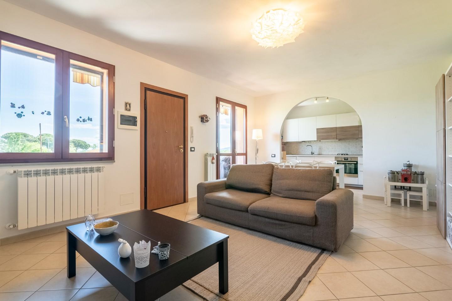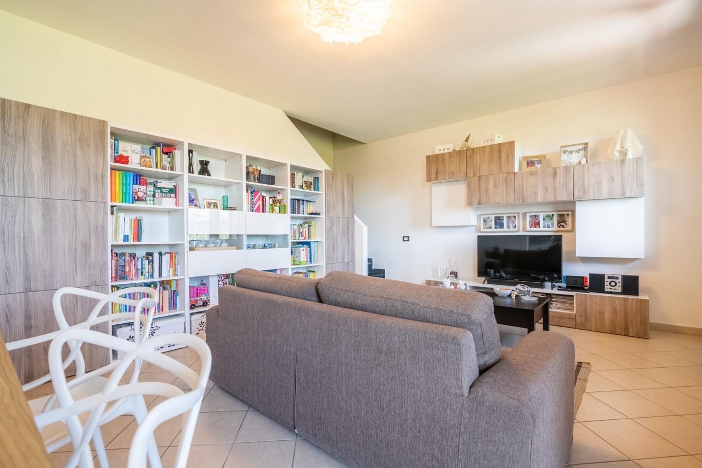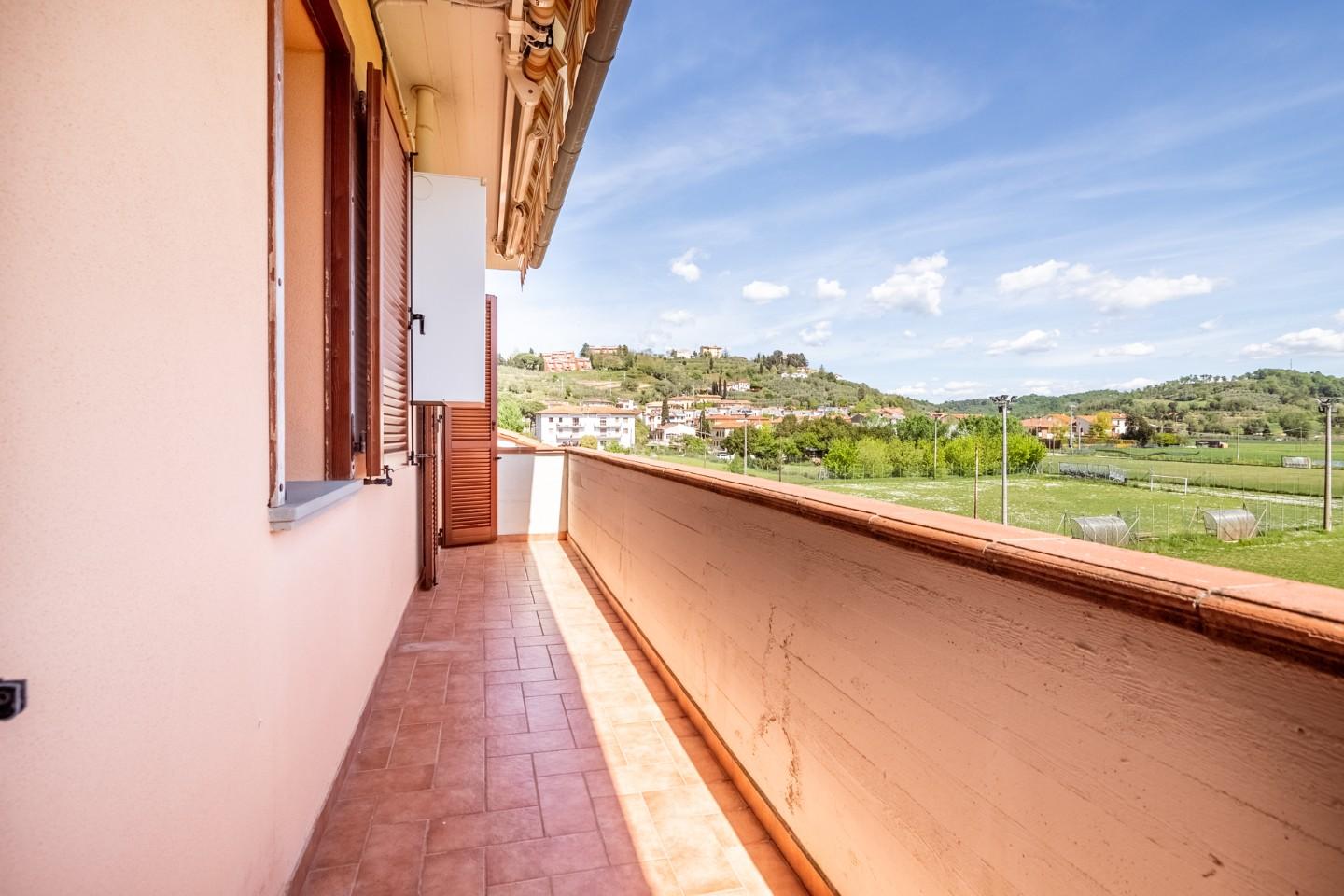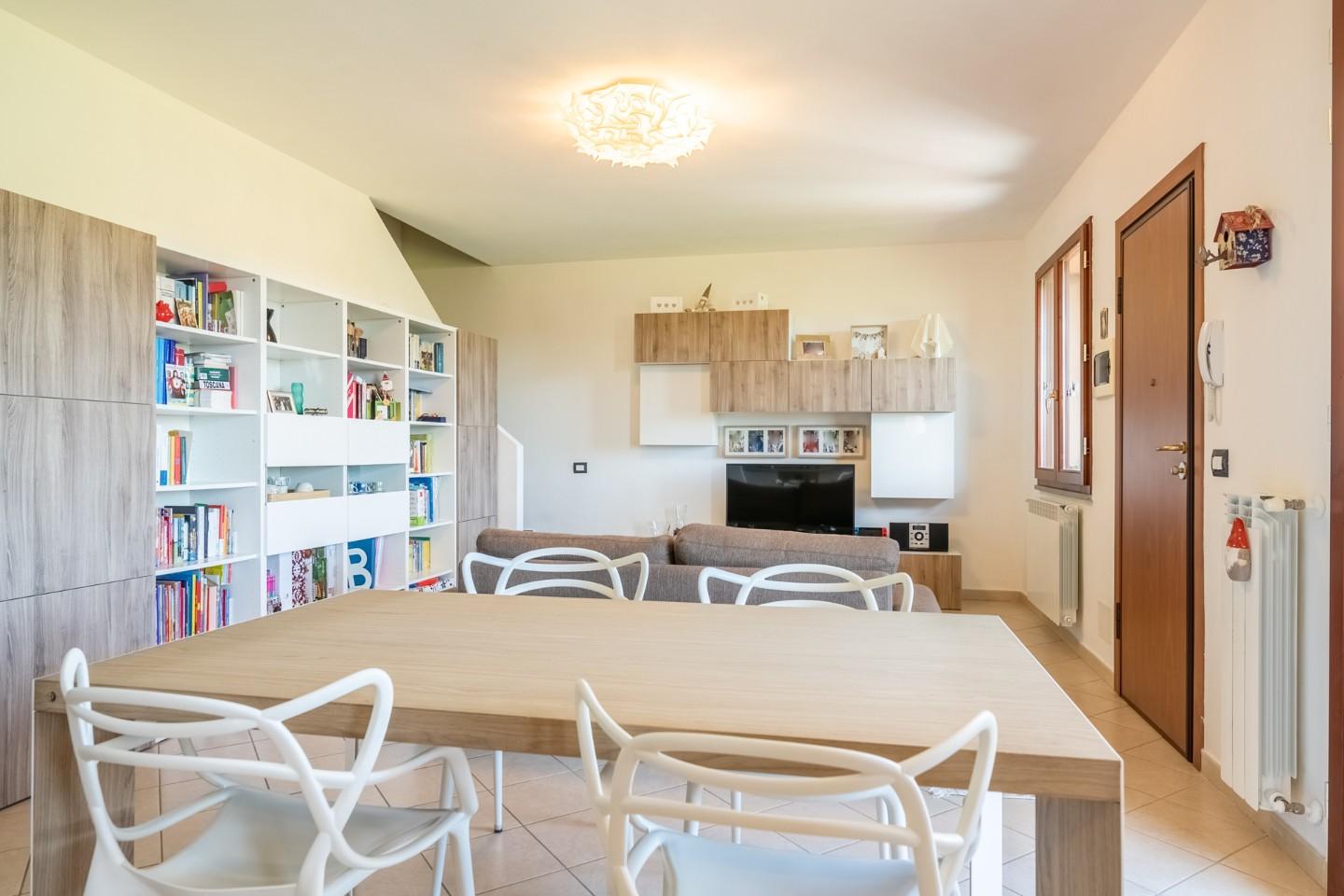 I Fabbri – Pontedera NOSTRA ESCLUSIVA Appartamento con ingresso indipendente, posto al primo piano di più ampio complesso immobiliare di recente costruzione. La proprietà è composta a piano terra da un piccolo resede privato, tramite scala esterna saliamo al primo piano dove abbiamo terrazzo d'arrivo, ingresso in ampia cucina soggiorno, disimpegno, ripostiglio e bagno. Saliamo al piano secondo con scale in muratura e troviamo camera matrimoniale, camera singola, ripostiglio, bagno finestrato con doccia e secondo terrazzo. In dotazione sottotetto in parte praticabile da poter utilizzare come ulteriore stanza jolly(studio, gaming, relax)