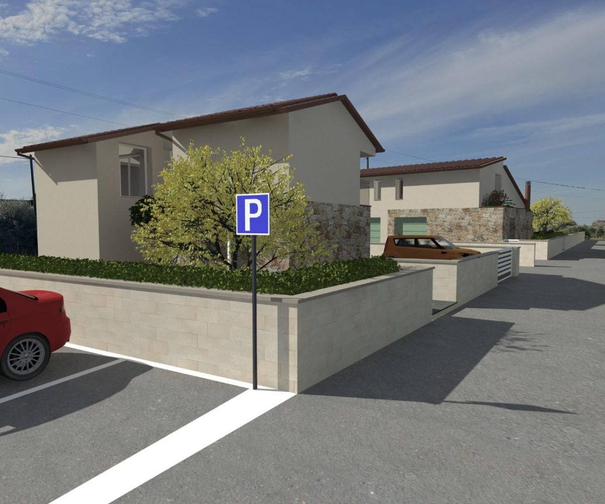 -Piano terra: garage di mq 20, ampia zona living open-space con cucina a vista, doppio loggiato, disimpegno e ripostiglio/wc.