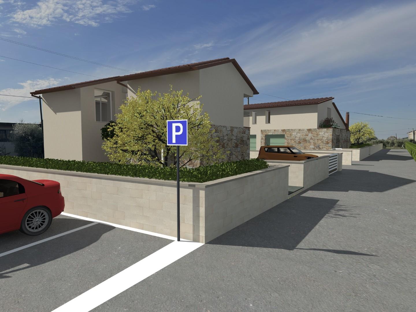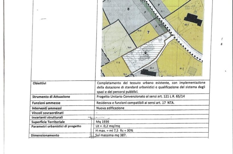 Il lotto, di forma regolare e con accesso diretto dalla strada principale, ha già un progetto approvato per la costruzione di una villette bifamiliari ed una villa singola, con ampio terreno agricolo circostante