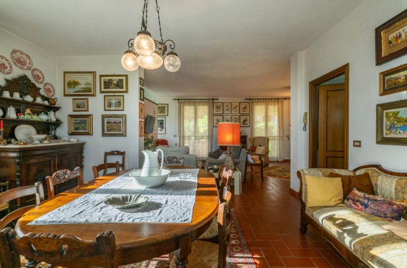In posizione tranquilla e riservata, ma comodamente vicina a tutti i principali servizi, proponiamo in vendita questa elegante villa indipendente, circondata da un curato giardino privato di oltre 1000 mq, con accesso carrabile e panorami mozzafiato sulle colline pisane.