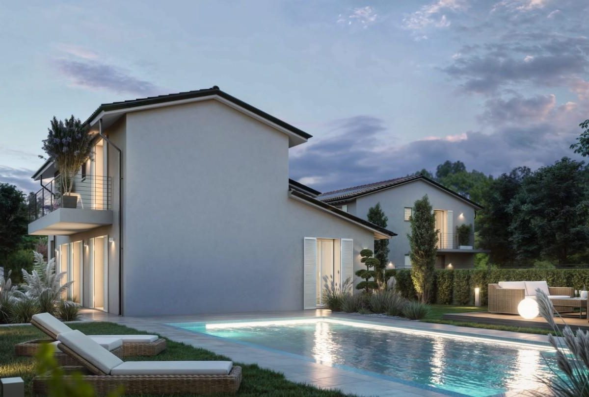 SANTA MARIA A MONTE–VILLA UNIFAMILIARE DI 150MQ CON 1500MQ DI GIARDINO E POSSIBILITA DI PISCINA. Nel comune di Santa Maria a Monte, è disponibile l’ultima opportunità per una villa di nuova costruzione immersa nel verde, ma in posizione comoda per raggiungere i principali servizi. La villa, con una superficie complessiva di circa 155 mq, si sviluppa su due piani fuori terra. Al piano terreno troviamo loggiato che introduce in un AMPIO soggiorno-cucina, IL disimpegno conduce al bagno di servizio, alla lavanderia con accesso diretto al giardino e a una camera padronale oltre pratico ripostiglio di servizio. La zona notte, posta al primo piano, presenta due camere matrimoniali di AMPIE dimensioni, una delle quali con cabina armadio. Il piano è servito da bagno moderno e funzionale. Entrambe le camere dispongono di terrazzo privato. Il giardino, di oltre 1500mq , è ampio e curato ed è previsto un comodo parcheggio interno e, per chi desidera rendere ancora più esclusiva la propria abitazione, vi è la possibilità di realizzare una piscina, disponibile anche già inclusa nella costruzione su richiesta del cliente. La casa è progettata secondo i criteri più avanzati: riscaldamento a pavimento con pompa di calore supportata da pannelli fotovoltaici, coibentazione, infissi a taglio termico. Tutto è studiato per offrire il massimo del comfort con il minimo dispendio energetico, garantendo una classe energetica A4. .- Rif. 2319-SO
